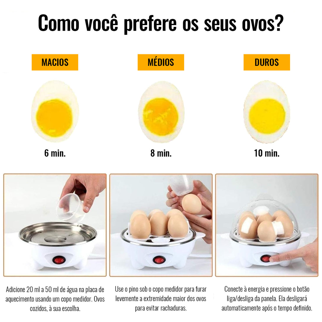 Prepare ovos cozidos perfeitos em poucos minutos, só com água e sem complicação! O Cozedor de Ovos Portátil é ideal para quem busca uma alimentação saudável, rápida e funcional. Com design compacto e fácil de usar, ele é perfeito para o café da manhã, lanches proteicos ou até para complementar saladas e receitas low carb.