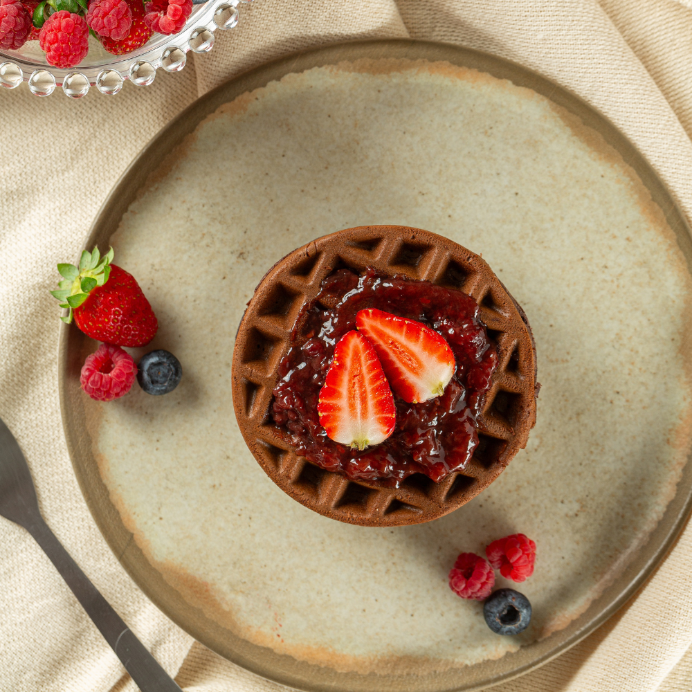 Waffle Proteico: Saboroso e nutritivo, ideal para o café da manhã ou lanche da tarde. Com alto teor de proteína e baixo carboidrato, ajuda a manter a saciedade e a energia por mais tempo.